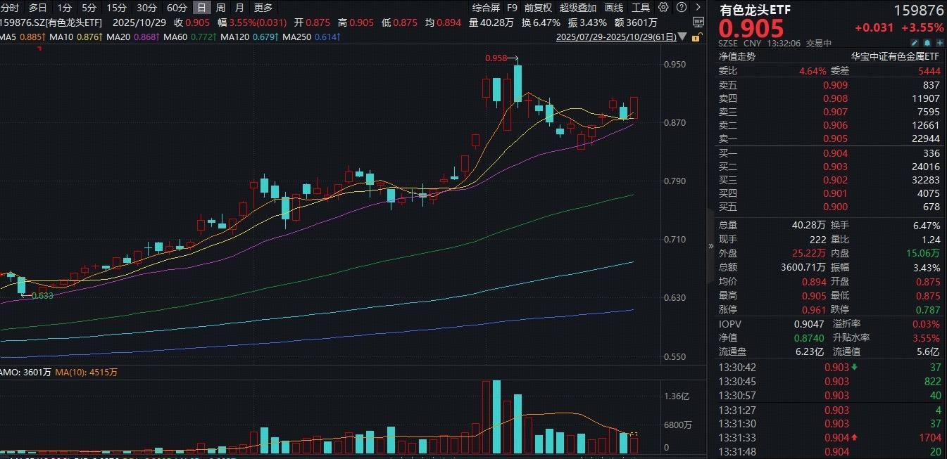 值得一提是,深交所数据显示,有色龙头ETF(159876)昨天单日吸金1167万元,或有资金逢跌提前进场埋伏!截至10月28日,该ETF最新规模5.44亿元,为同标的指数的3只产品中,规模最大的ETF。