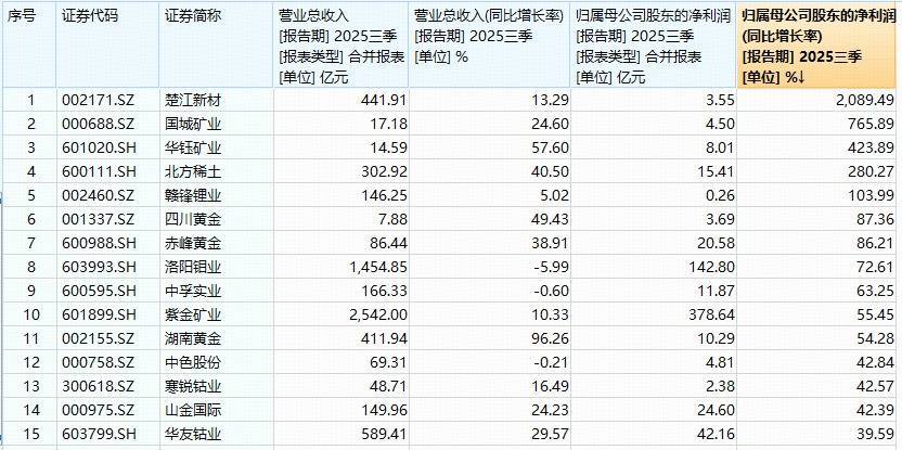 图:有色龙头ETF三季报归母净利同比增速TOP15优股配资