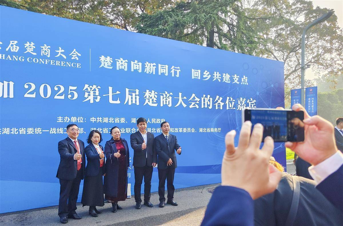 10月29日009配资,参会楚商代表在会场外合影。